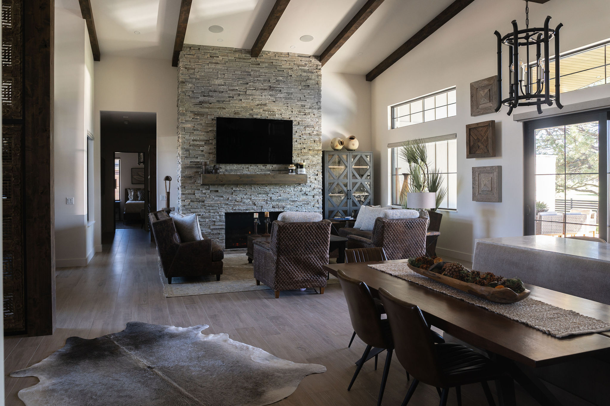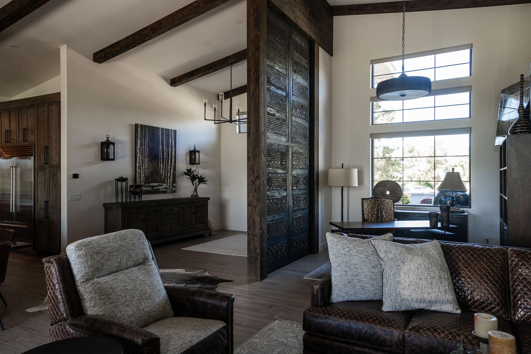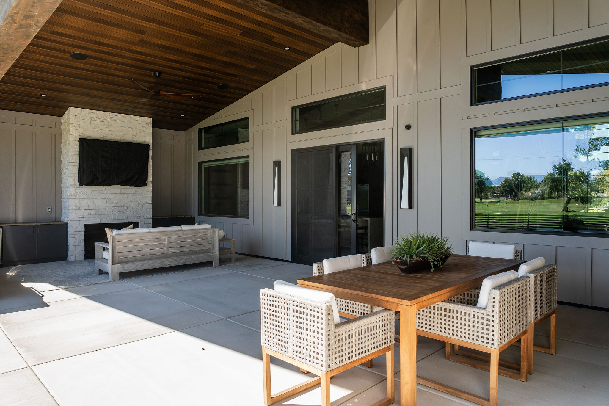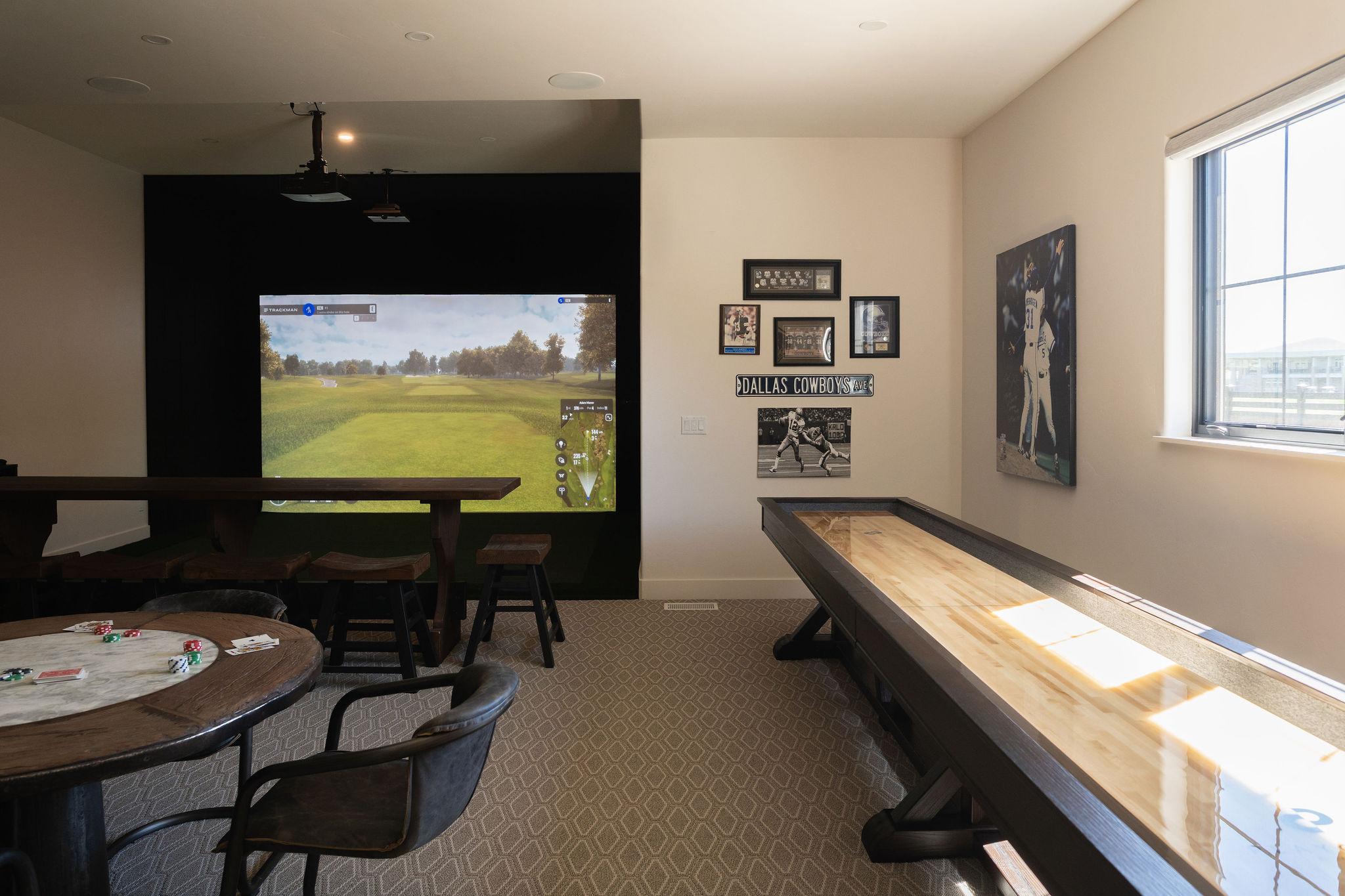 Perfectly positioned backing up to Bookcliff Country Club, The 19th Hole is a striking fusion of warm modern design and laid-back luxury. From its clean architectural lines to its rich natural materials, every detail of this custom home invites comfort without sacrificing sophistication. Inside, the open-concept living spaces are wrapped in wood, stone, and sunlight—blending sleek design with organic textures. Vaulted ceilings and expansive glass capture golf course views while creating a seamless flow from indoor elegance to outdoor relaxation. A standout feature is the Player’s Lounge: equal parts retreat and high-tech playground. Outfitted with a state-of-the-art golf simulator, it’s the ideal space to work on your swing, unwind with friends, or catch the game in style. Warm wood tones, moody lighting, and tailored finishes make it feel both grounded and refined. Entertaining at the chef’s island with built-in banquette or sipping cocktails on the covered patio, or lining up a drive just steps from the backyard, The 19th Hole is built for those who appreciate thoughtful design and a lifestyle that’s truly above par.