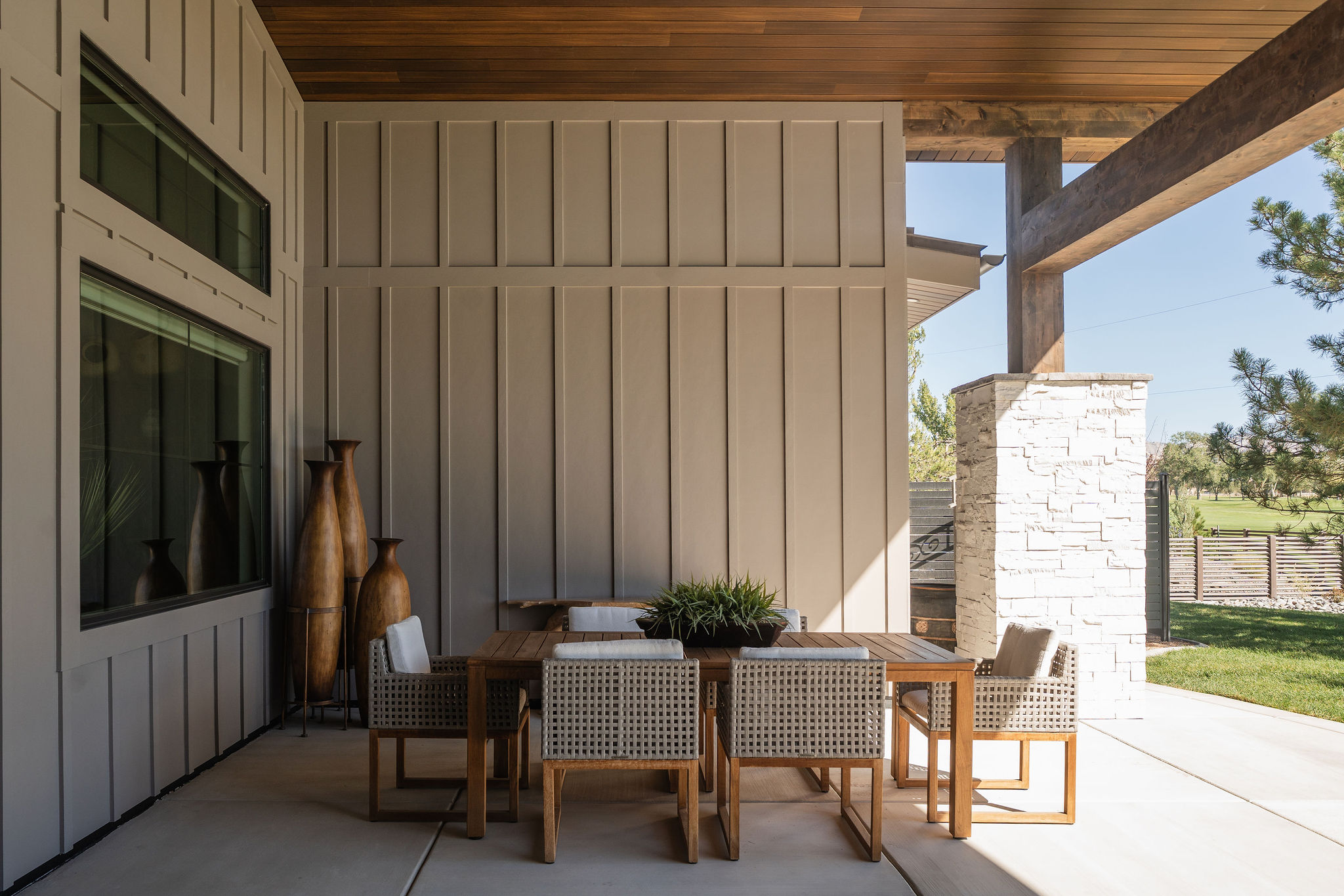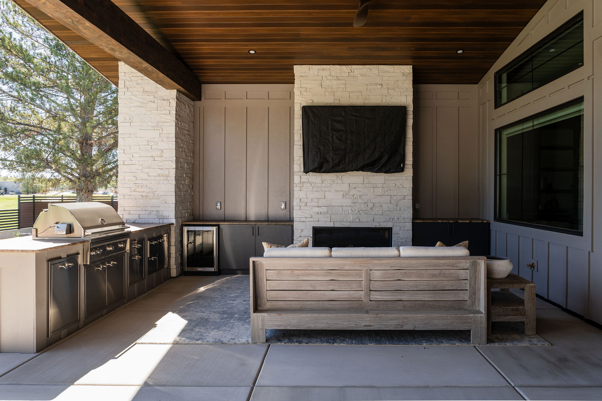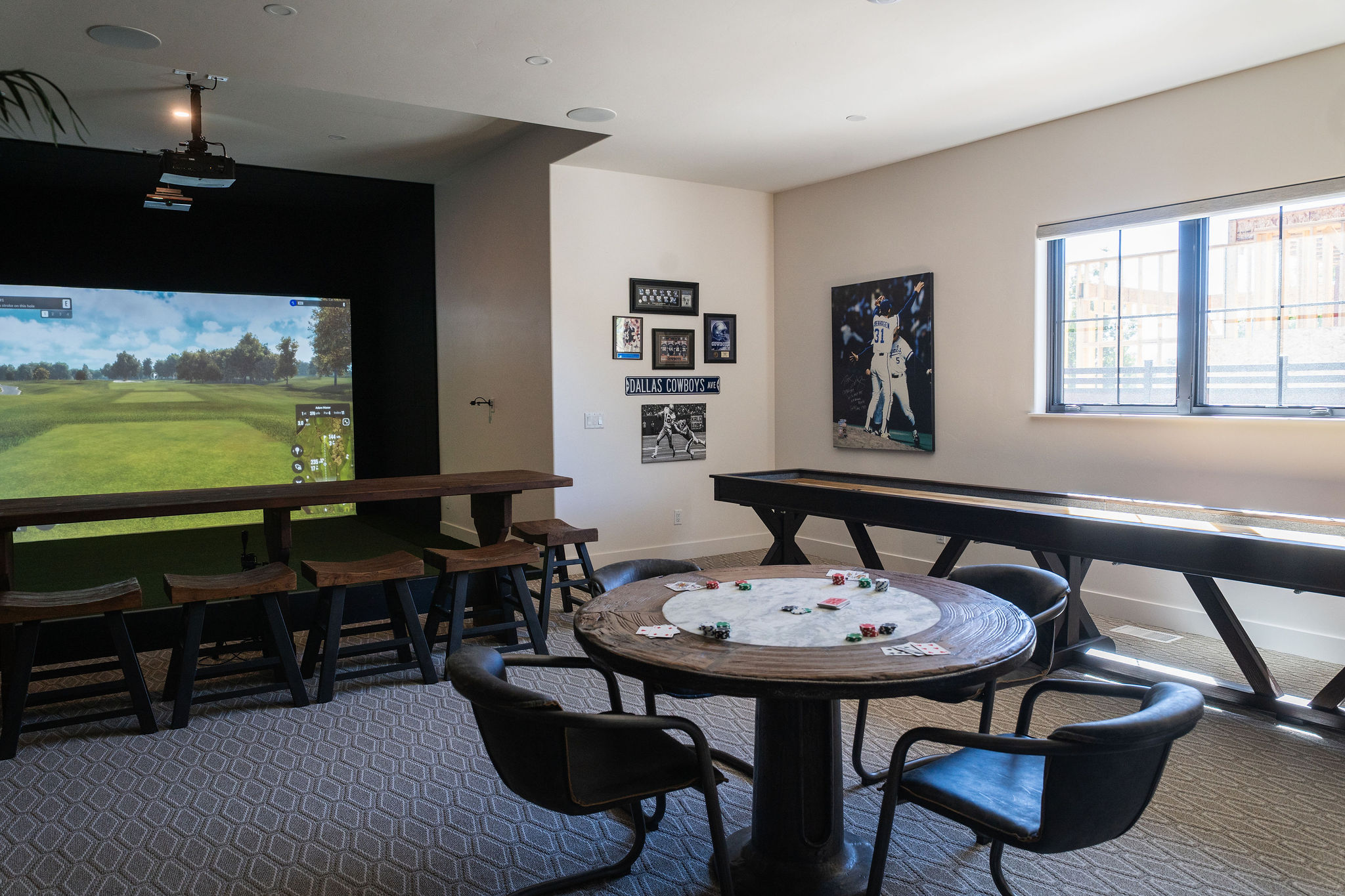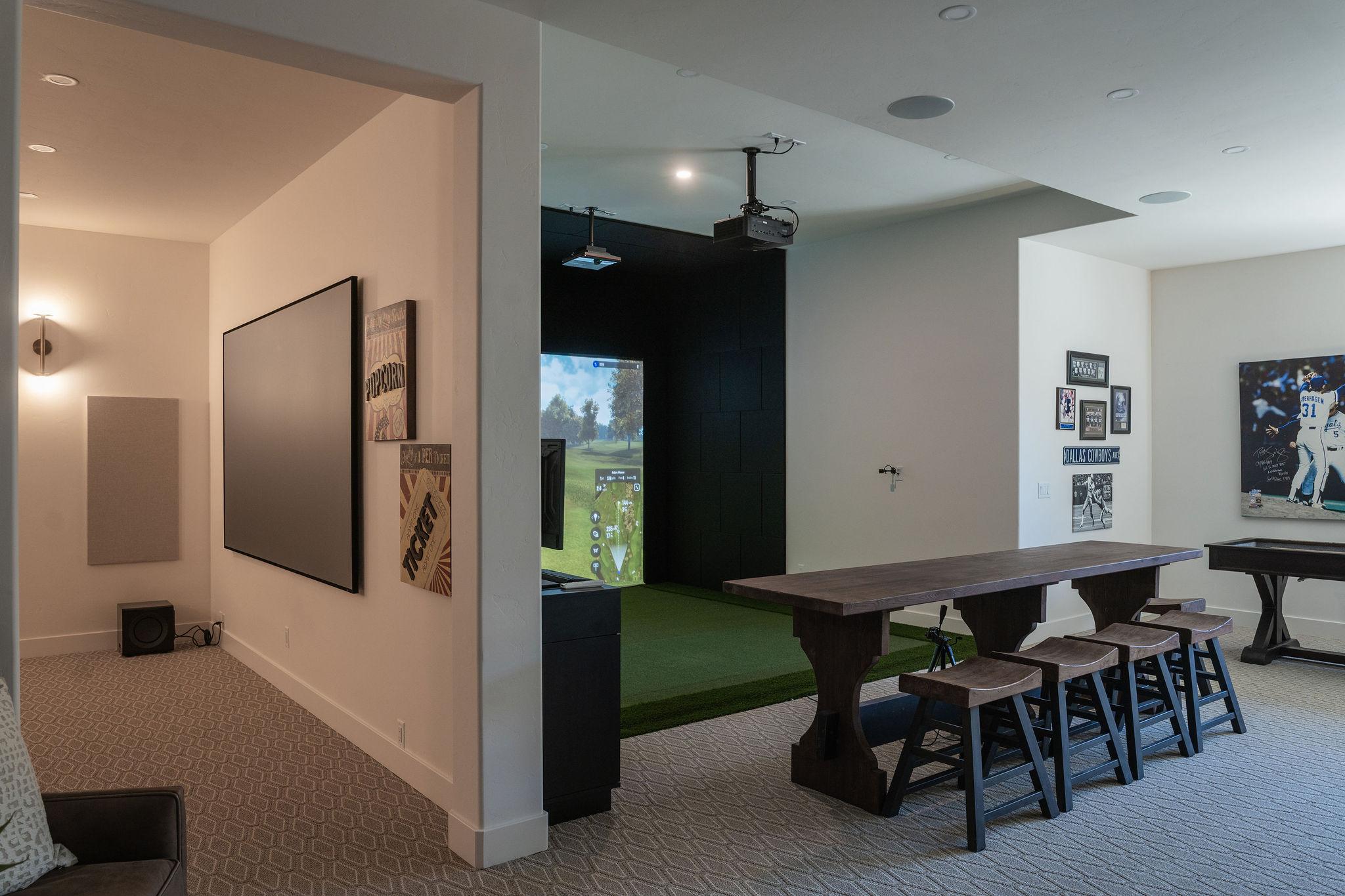 Perfectly positioned backing up to Bookcliff Country Club, The 19th Hole is a striking fusion of warm modern design and laid-back luxury. From its clean architectural lines to its rich natural materials, every detail of this custom home invites comfort without sacrificing sophistication. Inside, the open-concept living spaces are wrapped in wood, stone, and sunlight—blending sleek design with organic textures. Vaulted ceilings and expansive glass capture golf course views while creating a seamless flow from indoor elegance to outdoor relaxation. A standout feature is the Player’s Lounge: equal parts retreat and high-tech playground. Outfitted with a state-of-the-art golf simulator, it’s the ideal space to work on your swing, unwind with friends, or catch the game in style. Warm wood tones, moody lighting, and tailored finishes make it feel both grounded and refined. Entertaining at the chef’s island with built-in banquette or sipping cocktails on the covered patio, or lining up a drive just steps from the backyard, The 19th Hole is built for those who appreciate thoughtful design and a lifestyle that’s truly above par.