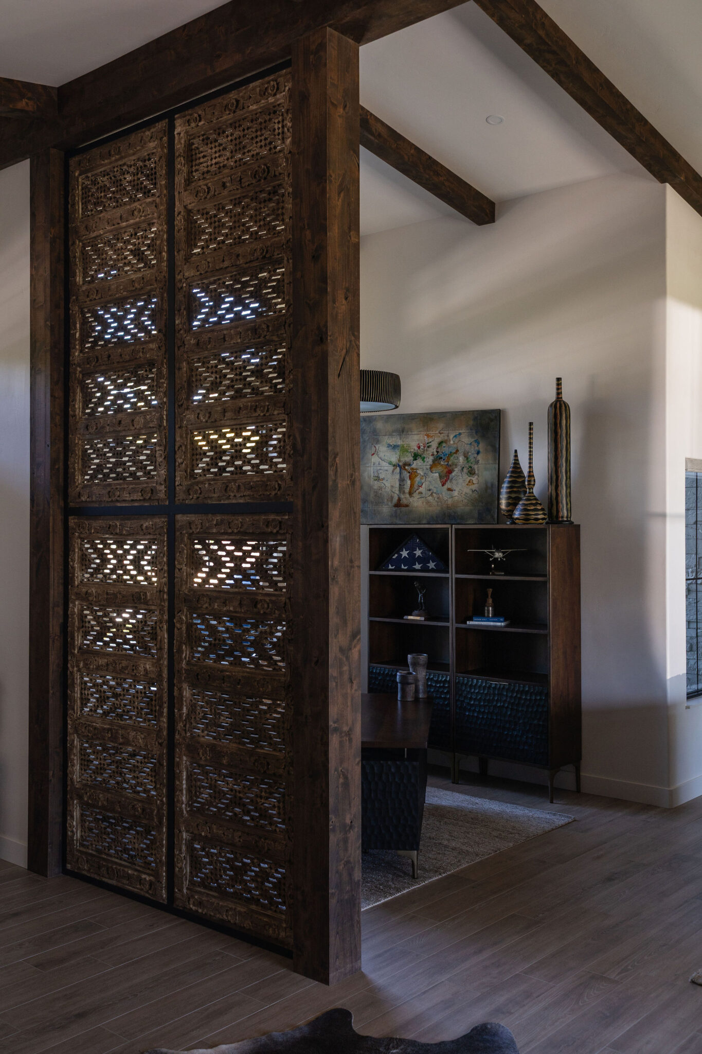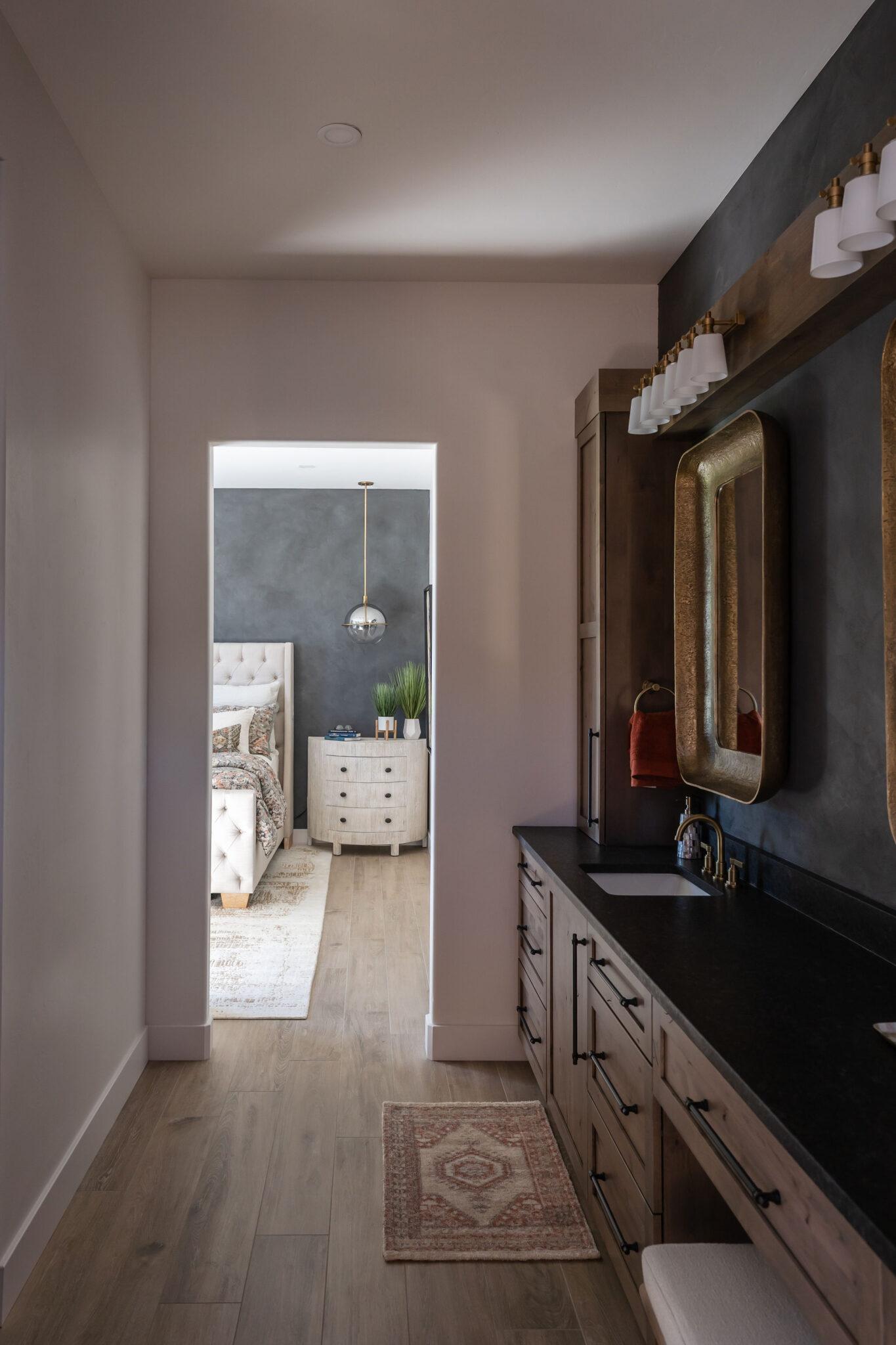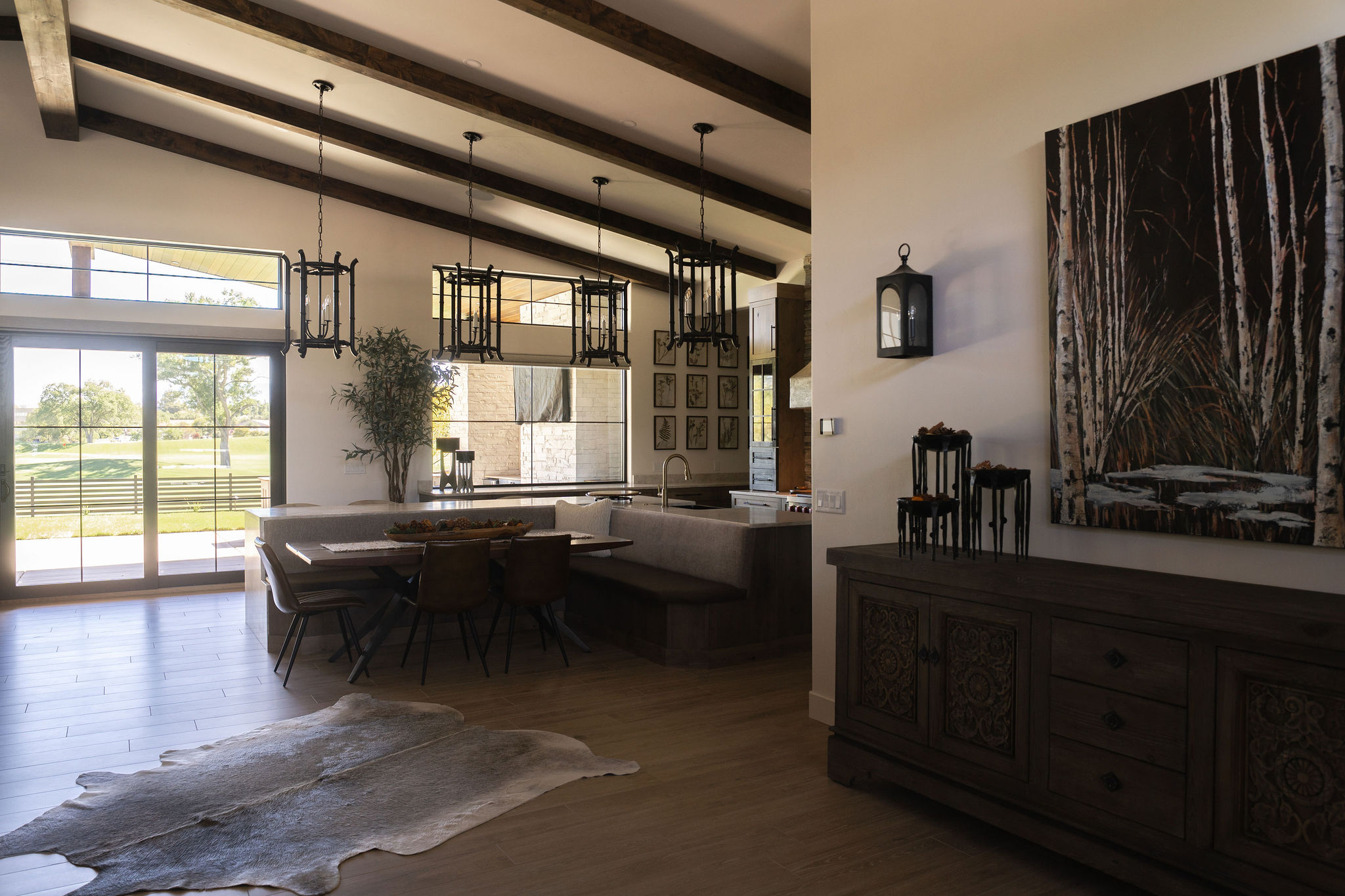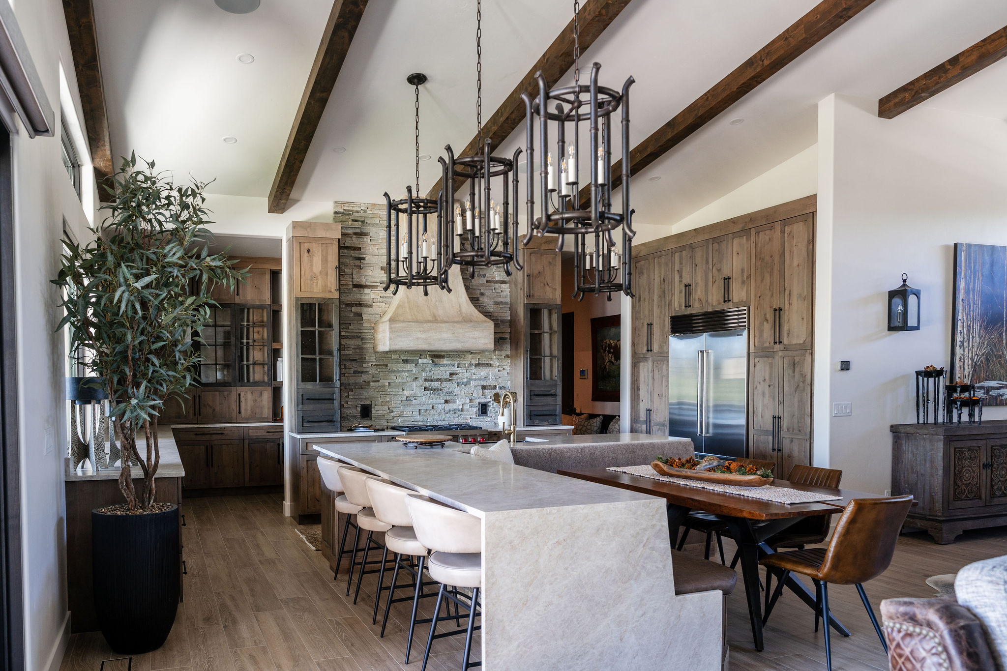 Perfectly positioned backing up to Bookcliff Country Club, The 19th Hole is a striking fusion of warm modern design and laid-back luxury. From its clean architectural lines to its rich natural materials, every detail of this custom home invites comfort without sacrificing sophistication. Inside, the open-concept living spaces are wrapped in wood, stone, and sunlight—blending sleek design with organic textures. Vaulted ceilings and expansive glass capture golf course views while creating a seamless flow from indoor elegance to outdoor relaxation. A standout feature is the Player’s Lounge: equal parts retreat and high-tech playground. Outfitted with a state-of-the-art golf simulator, it’s the ideal space to work on your swing, unwind with friends, or catch the game in style. Warm wood tones, moody lighting, and tailored finishes make it feel both grounded and refined. Entertaining at the chef’s island with built-in banquette or sipping cocktails on the covered patio, or lining up a drive just steps from the backyard, The 19th Hole is built for those who appreciate thoughtful design and a lifestyle that’s truly above par.