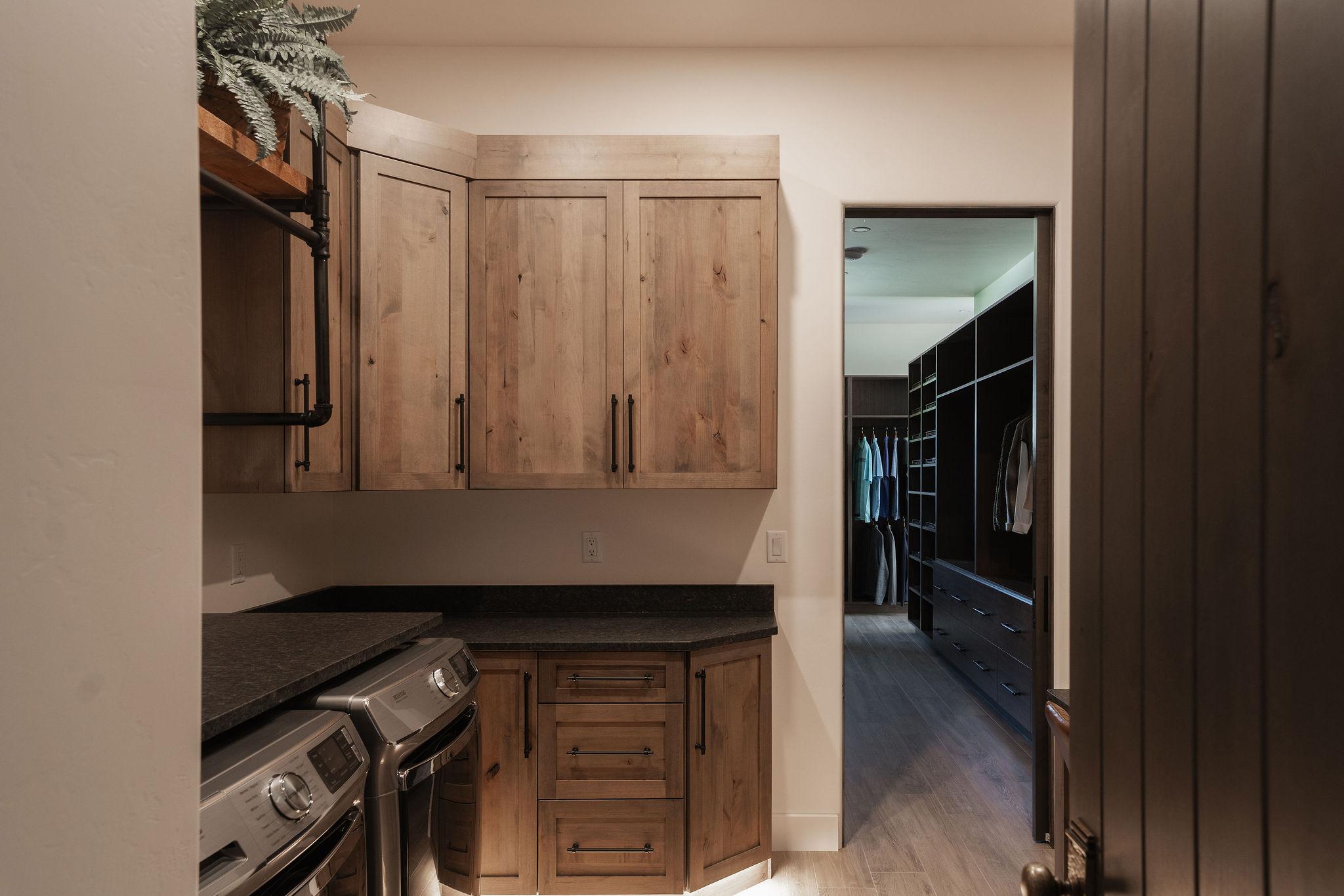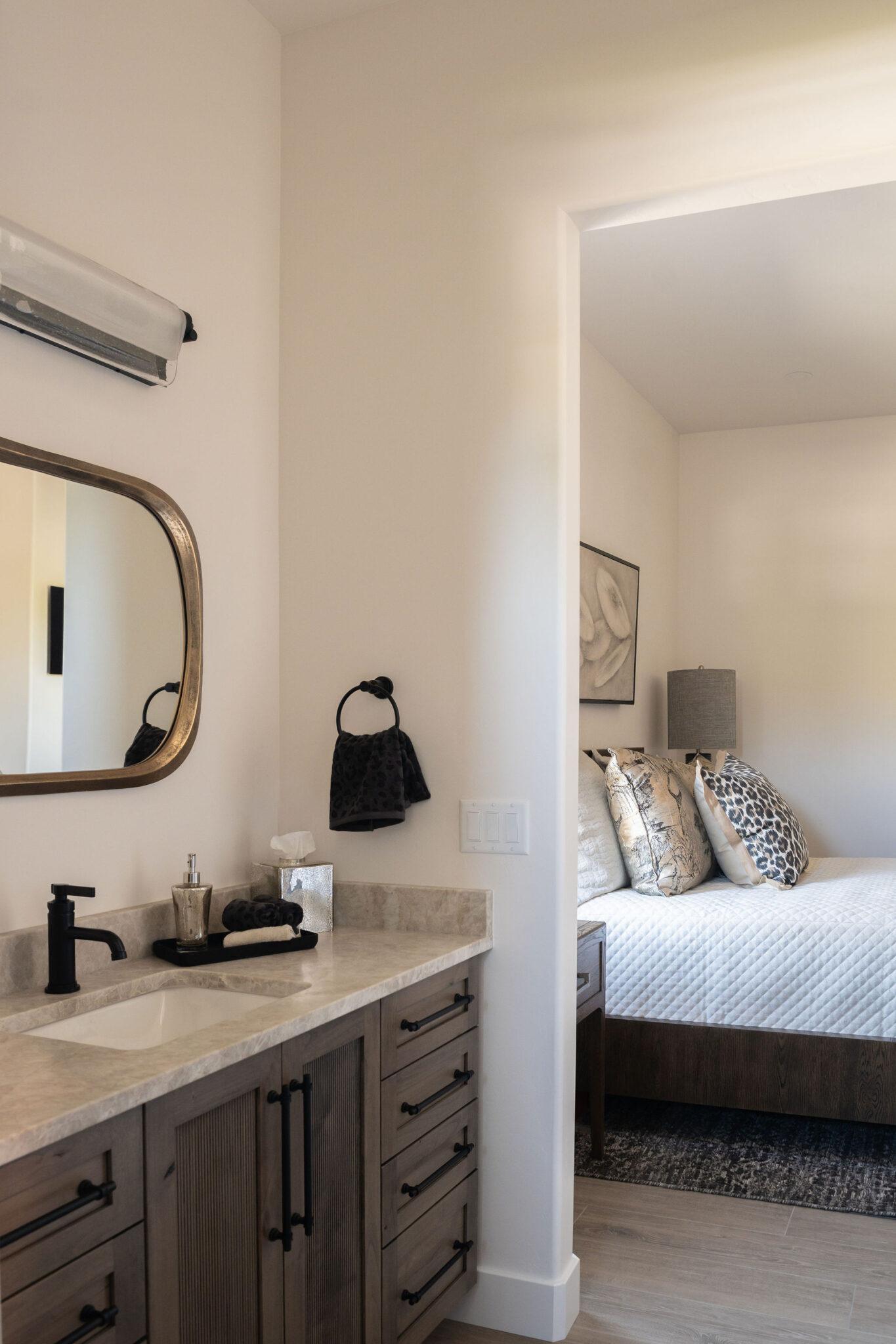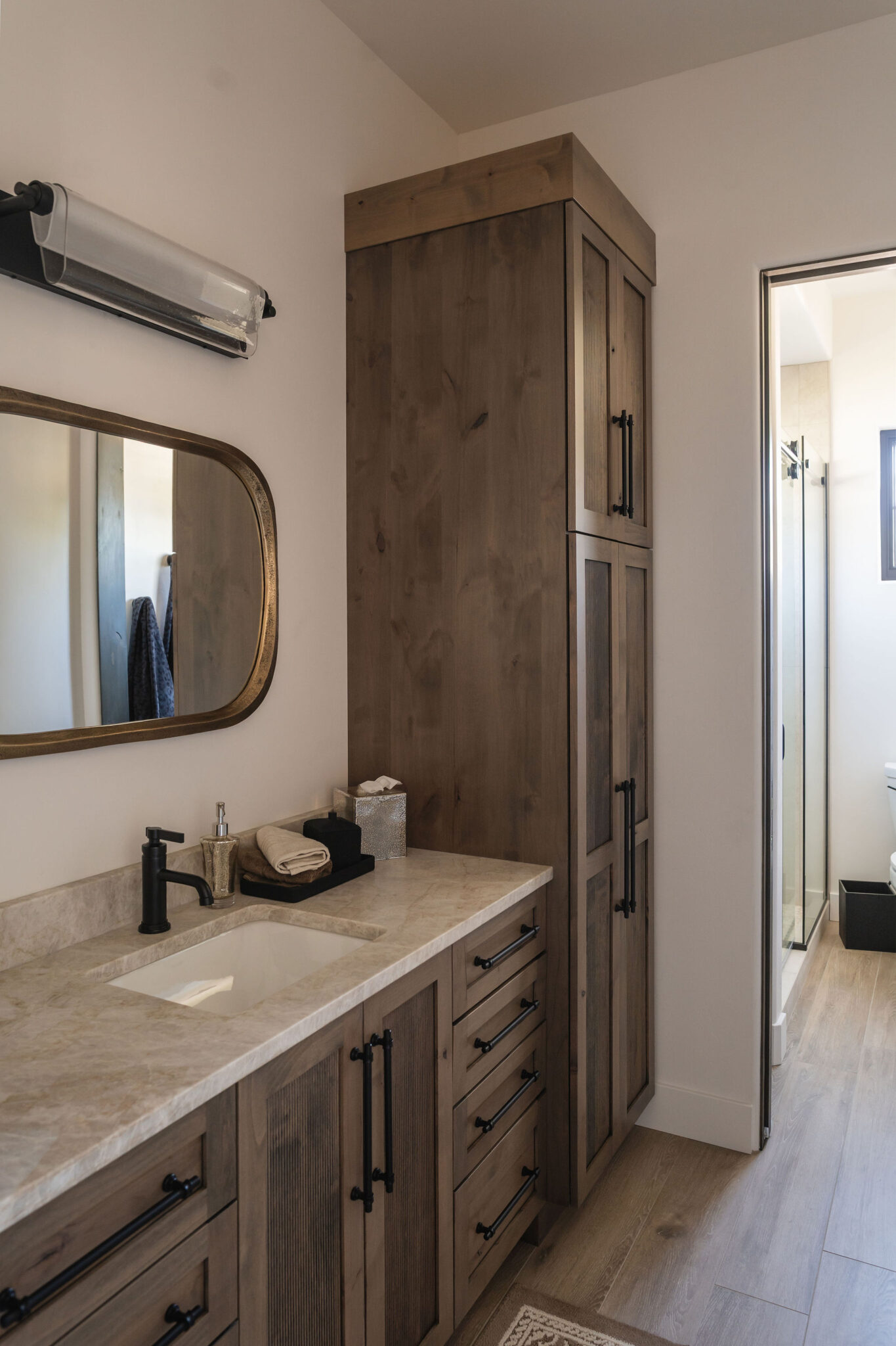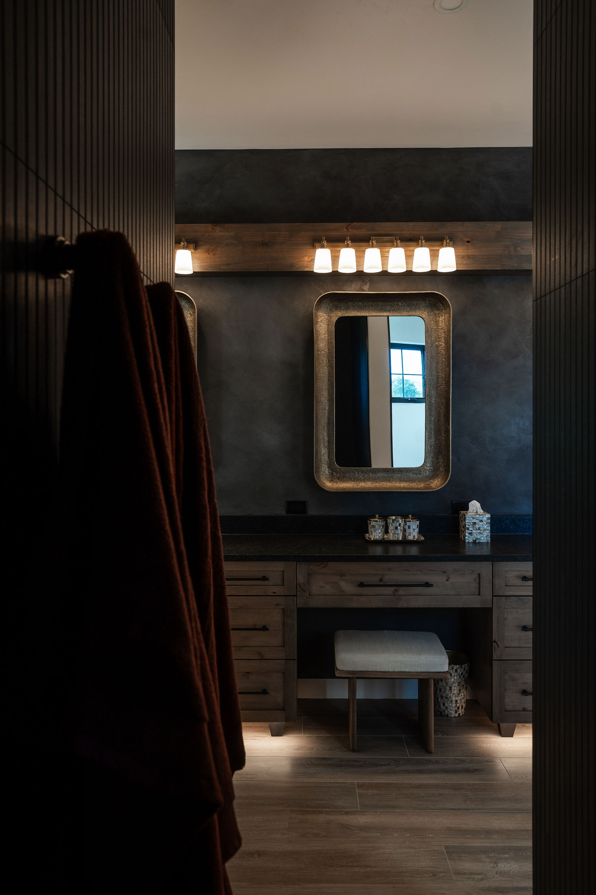Perfectly positioned backing up to Bookcliff Country Club, The 19th Hole is a striking fusion of warm modern design and laid-back luxury. From its clean architectural lines to its rich natural materials, every detail of this custom home invites comfort without sacrificing sophistication. Inside, the open-concept living spaces are wrapped in wood, stone, and sunlight—blending sleek design with organic textures. Vaulted ceilings and expansive glass capture golf course views while creating a seamless flow from indoor elegance to outdoor relaxation. A standout feature is the Player’s Lounge: equal parts retreat and high-tech playground. Outfitted with a state-of-the-art golf simulator, it’s the ideal space to work on your swing, unwind with friends, or catch the game in style. Warm wood tones, moody lighting, and tailored finishes make it feel both grounded and refined. Entertaining at the chef’s island with built-in banquette or sipping cocktails on the covered patio, or lining up a drive just steps from the backyard, The 19th Hole is built for those who appreciate thoughtful design and a lifestyle that’s truly above par.